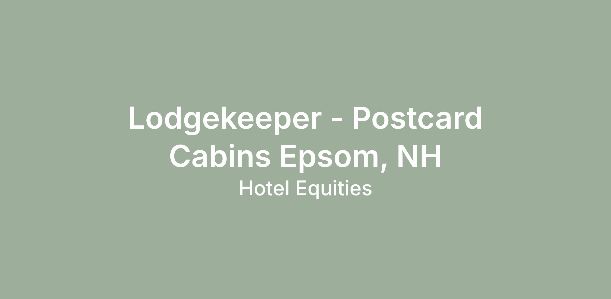 Hotel Equities, a multi-award-winning hotel development and hospitality management company, is currently searching for a remarkable Lodgekeeper for Postcard Cabins in Epsom NH. Hiring pay starting at $16.00 to $18.00 per hour.